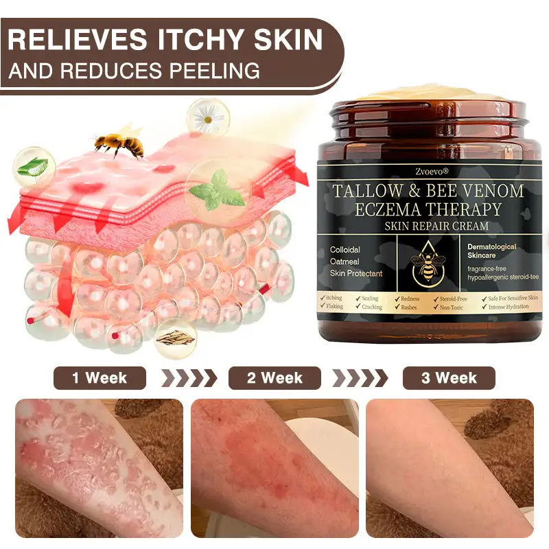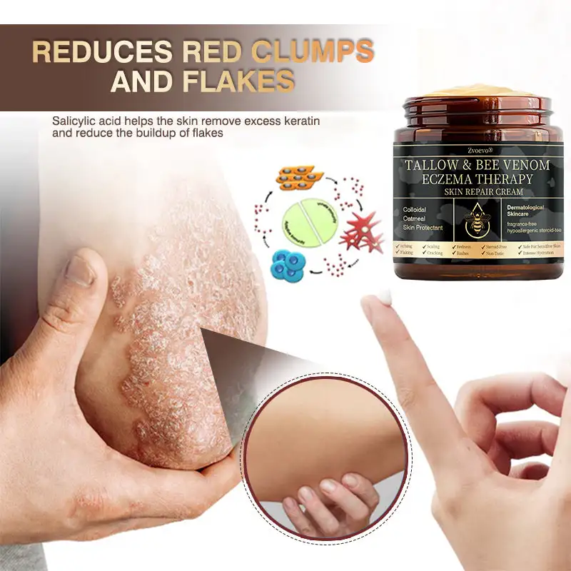 “Iโve battled stubborn psoriasis for years, from my face down to my neck. I tried everything โ prescription creams, steroid ointments, medicated soaps, even painkillers to survive flare-ups โ but nothing worked long-term. Then I tried ๐๐ฏ๐จ๐๐ฏ๐จยฎ Eczema Therapy Cream with Tallow & Bee Venom. Within weeks, the redness and flakes started to improve, the burning eased, and after 3 weeks, my skin finally looks normal. I can go out without hiding my face, and I feel confident again. This cream really gave me my life back.” โ โญโญโญโญโญ Caroline Hughes