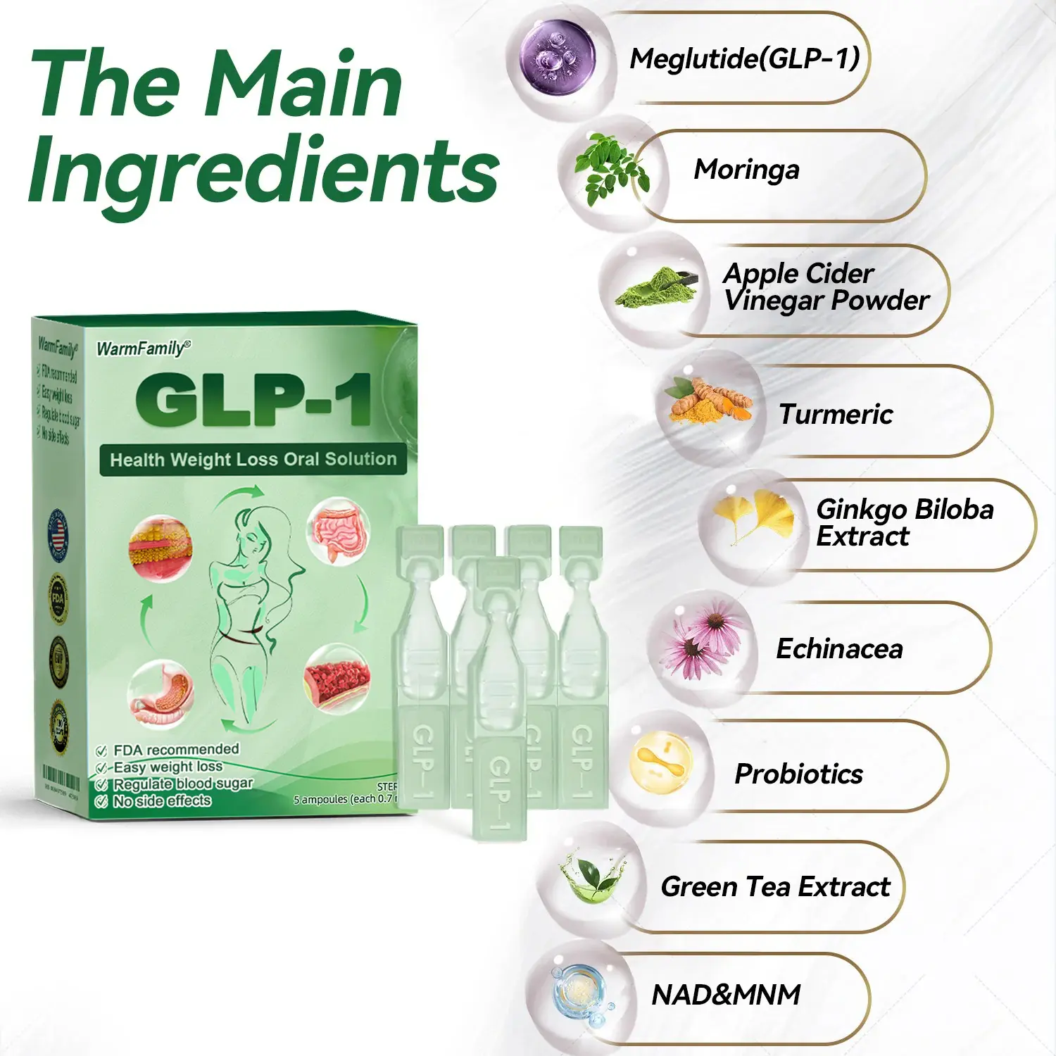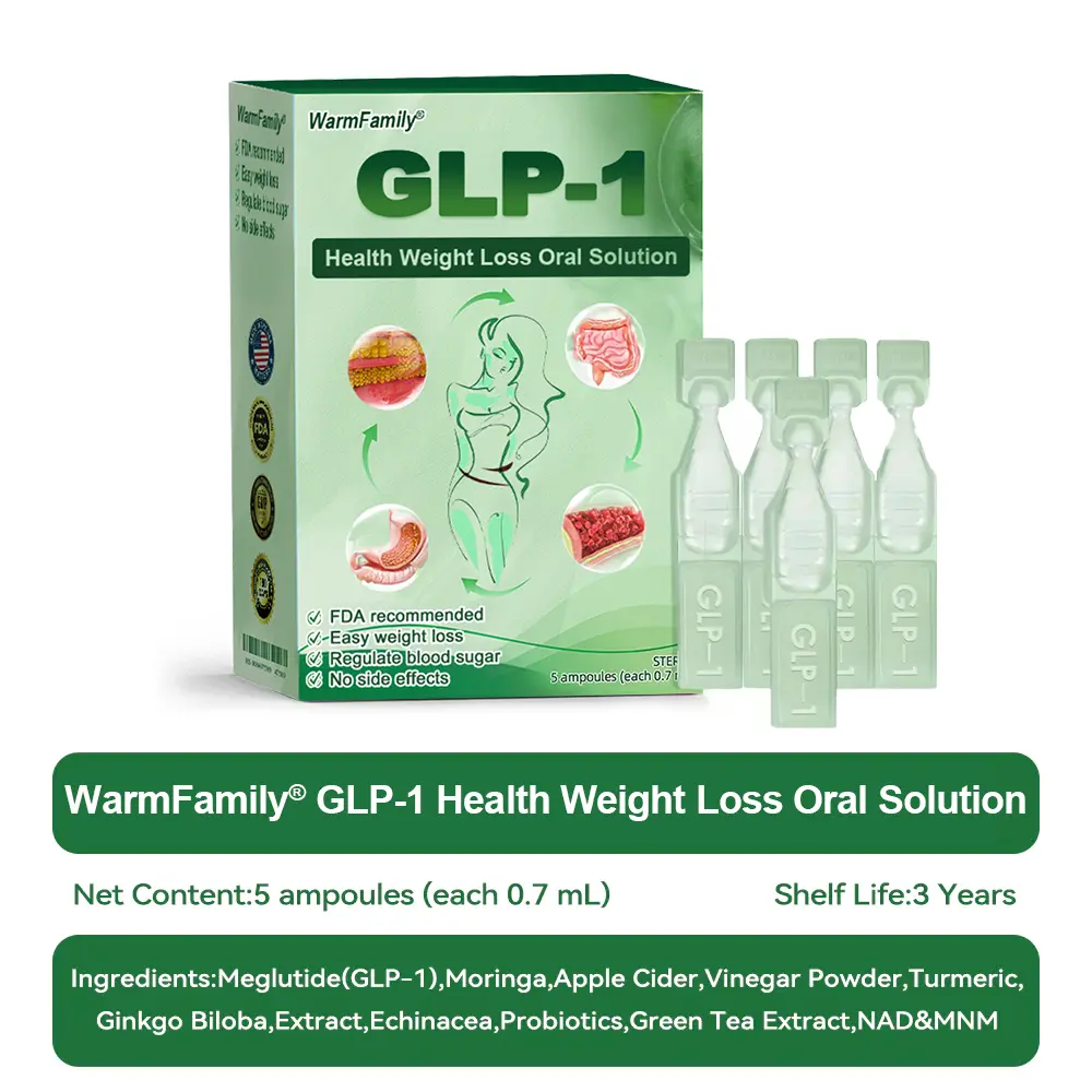 WarmFamilyยฎ GLP-1 Health & Nutrition Oral Liquid was developed by a team of over 30 experts across more than 20 years of research. It combines Meglutide with powerful herbal ingredients to boost metabolism, accelerate fat burning, and support the health of the digestive and lymphatic systems. This oral formula is FDA-approved for safety and effectiveness, offering a science-backed solution for weight management and overall wellness.