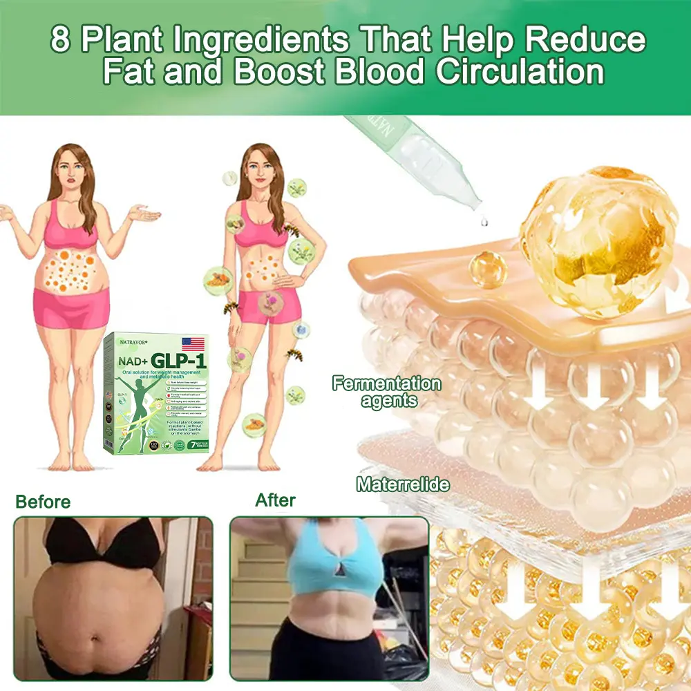 Clinically tested by endocrinologist, Natravorยฎ NAD+ GLP-1 Six in One Health Solution Oral Liquidย activation can significantly improve obesity and other health issues within just 7 days.