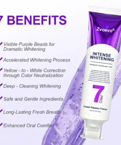 โ Visible teeth whitening โ Gently removes surface stains and yellow tones using purple correction technology โ without abrasive ingredients.
