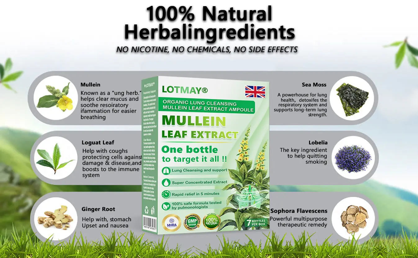 The Key Ingredients ofย LOTMAYยฎOrganic Lung Cleansing Mullein Leaf Extract Ampoule