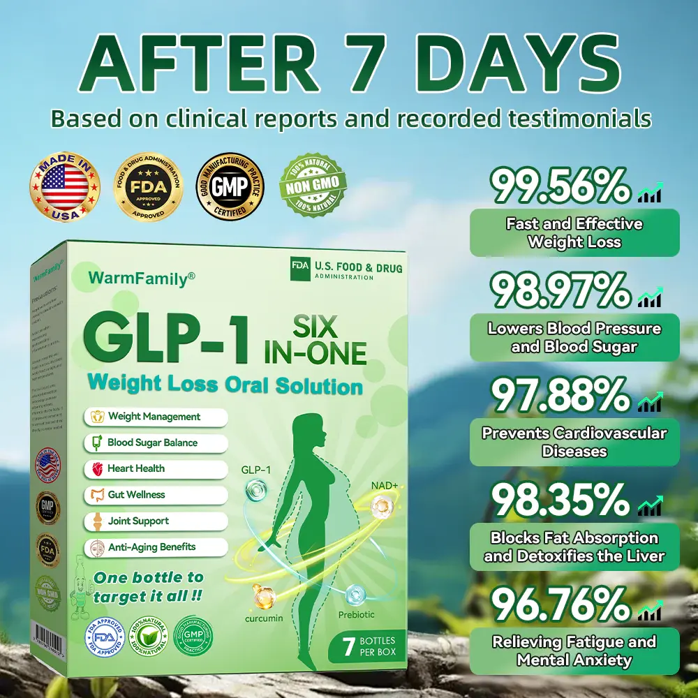 In clinical studies, users ofย WarmFamilyยฎ GLP-1 Six in One Health Solution Oral Liquidย achieved impressive results, with some losing as much as 6โ8 lbs of stubborn fat in just one week.With just one dose every two days, it effectively targets the burning of visceral and abdominal fat, helping to sculpt a leaner body โ no intense workouts required.