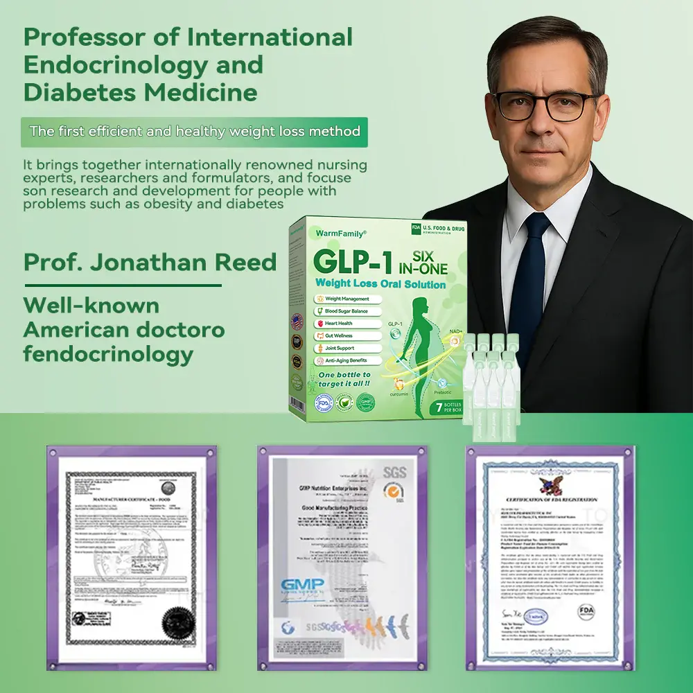 “As an endocrinologist, I am committed to finding effective and natural solutions for metabolic health and weight management. After extensive research and clinical trials with over 5,000 participants, I have found that WarmFamilyยฎ GLP-1 Six in One Health Solution Oral Liquid offers remarkable benefits for metabolism, appetite control, and overall well-being. This formula naturally supports GLP-1 activation, helping regulate blood sugar levels, curb cravings, and enhance fat burning. Its powerful blend of apple cider vinegar, turmeric, and other natural ingredients not only aids in healthy weight loss but also promotes digestive health, boosts immunity, and supports long-term metabolic balance. With the backing of modern medical research,ย WarmFamilyยฎ GLP-1 Six in One Health Solution Oral Liquidย is a trusted, science-driven choice for those seeking a natural and effective approach to weight management and overall health.”