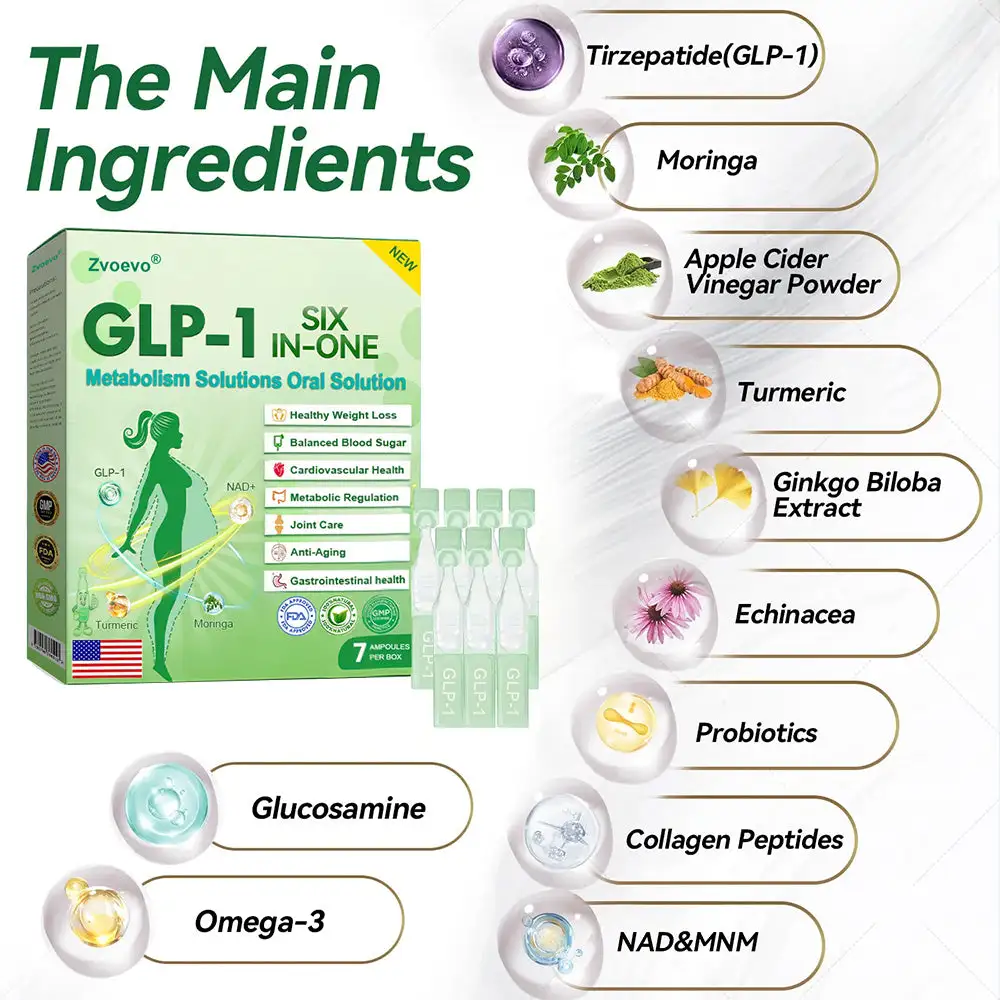 GLP-1 SIX-IN-ONE Health Solution Oral Liquidย was developed by a team of over 30 experts in international endocrinology and diabetology after more than 3 years of research. It combinesย Tirzepatideย with powerful herbal ingredients to boost metabolism, accelerate fat burning, and support digestive and lymphatic health. This oral solution has been approved by the U.S. Food and Drug Administration (FDA) for its safety and efficacy, offering a scientifically backed solution for weight loss and overall wellness.