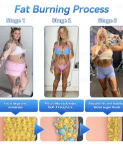 Meglutide, combined withย apple cider vinegar and the powerful Moringa extract, helps the body utilize fat stores more effectively for energy. By improving insulin sensitivity, it accelerates fat burning, especially during calorie restriction or increased physical activity. The apple cider vinegar works to stabilize blood sugar levels, preventing excess glucose from being stored as fat.