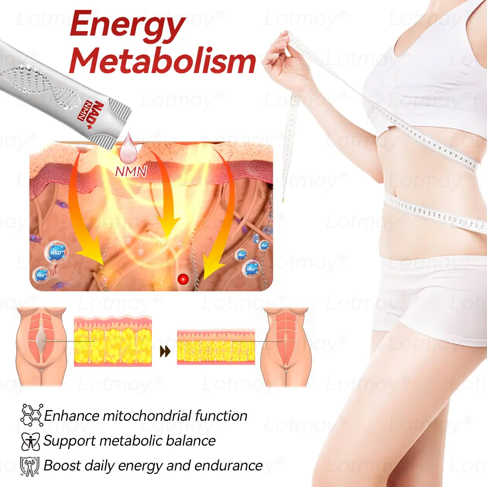 NMN rapidly converts to NADโบย within the body, boosting cellular energy and promoting collagen synthesis. This deeply improves skin firmness and elasticity, helping to smooth wrinkles and sagging. Urolithin A activates mitochondrial renewal, enhancing cellular repair and metabolic efficiency to delay signs of skin aging. Combined with CoQ10’s antioxidant properties, it shields collagen fibers from free radical damage, reducing dark spots and dullness. This synergistic trio not only firms and plumps the skin but also brightens the complexion, redefines contours, and naturally restores a youthful radiance.