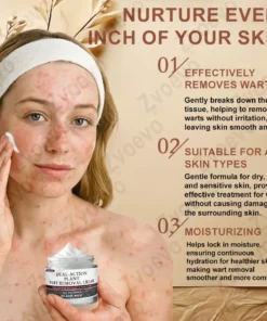 Black Rice Skin Repair Essence Cream combines multiple active ingredients for gentle yet effective wart removal and skin repair.Its key ingredient, black rice enzyme, is rich in anthocyanins and offers strong antioxidant properties to accelerate keratin metabolism and soothe irritation. Tea tree oil provides natural antibacterial power, helping to inhibit virus-related warts like HPV. Salicylic acid (2%) deeply softens keratin, encouraging warts to dry out and fall off naturally.The formula also includes allantoin, skullcap root extract, and centella asiatica extract to calm redness and support post-wart skin repair, reducing pigmentation. Glycerin delivers lasting hydration to maintain a stable skin barrier.