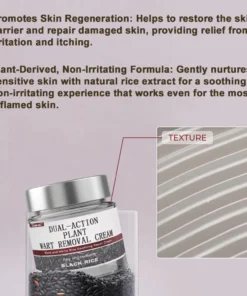 The Black Rice Skin Repair Essence Cream uses a powerful core ingredient—black rice enzyme—to gently break down wart tissue and support natural shedding without irritation or damage to the skin. Rich in natural anthocyanins, black rice offers excellent soothing and restorative properties, helping protect the skin barrier while effectively removing warts and minimizing discomfort, redness, and inflammation.