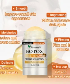 The creation of flysmus™ Botox Bee Venom Firming Serum Stick stems from the factors of collagen loss and hormonal imbalance, which contribute to skin concerns like wrinkles, aging, sagging, and fat accumulation. By incorporating this product into your routine, you can effectively address issues such as stretch marks, wrinkles, and sagging skin, while enhancing the appearance of your abs, breasts, and buttocks. Moreover, it aids in tightening loose skin and offers various other advantages. Rest assured, flysmus™ Botox Bee Venom Firming Serum Stick is crafted from 100% natural ingredients, ensuring both the safety of your skin and the provision of a high-quality product.