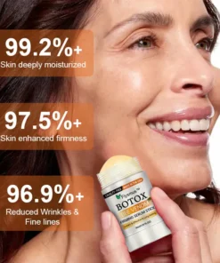 Flysmus™ Botox Bee Venom Firming Serum Stick uses bee venom peptides to mimic the effects of Botox, relaxing facial muscles and reducing the formation of expression lines. At the same time, hyaluronic acid deeply hydrates the skin, making it plump and effectively smoothing fine lines and wrinkles. The combination of Acetyl Hexapeptide-8 and botulinum toxin targets deep wrinkles like forehead lines and crow’s feet, leaving your skin looking firmer and smoother.