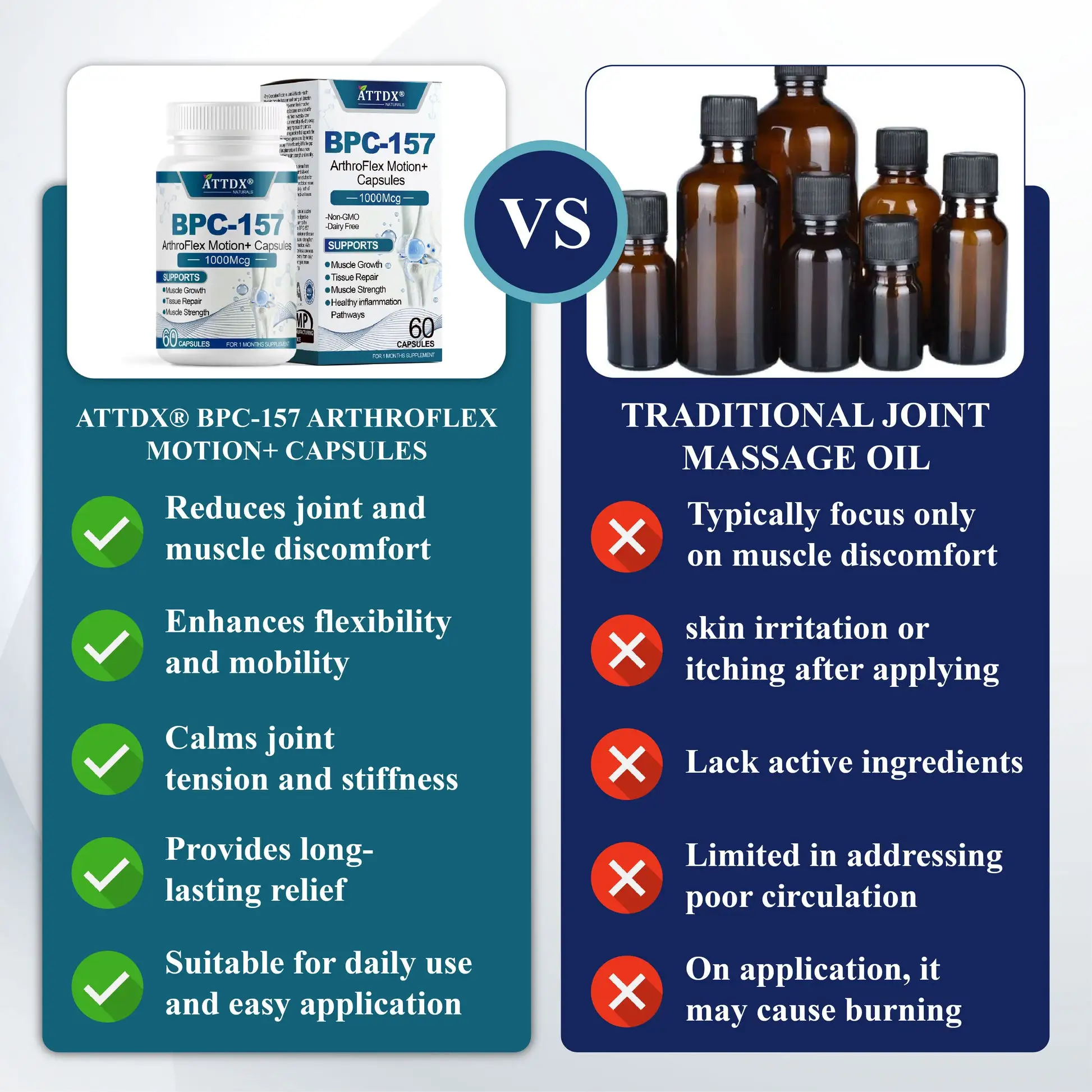 By supporting these natural recovery pathways, ATTDX® BPC-157 ArthroFlex Motion+ Capsules help reduce stiffness, ease discomfort, and maintain joint elasticity for long-term resilience and flexibility.