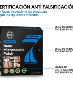 El Natravor™ 𝐒𝐌𝐆𝐓-𝐆𝐋𝐏-𝟏 𝐍𝐚𝐧𝐨 𝐌𝐢𝐜𝐫𝐨𝐧𝐞𝐞𝐝𝐥𝐞 𝐏𝐚𝐭𝐜𝐡 ha sido desarrollado meticulosamente por la Sociedad de la Obesidad. Diseñado por un equipo de expertos líderes en el manejo de la obesidad, este producto de vanguardia fue creado tras años de investigación exhaustiva y un profundo conocimiento de los mecanismos involucrados en la pérdida de peso y el control de la obesidad. Su fórmula única está diseñada para promover eficazmente la pérdida de peso, mantener niveles estables de azúcar en sangre y mejorar el equilibrio metabólico, al tiempo que incorpora Matrixyl 3000 para brindar importantes efectos reafirmantes y lifting, ayudando a los usuarios a mejorar la forma del cuerpo y la condición de la piel de manera más integral, apoyándolos así en el logro de sus objetivos de salud.