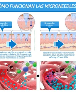 Cada aguja mide 0,27 mm de largo, apenas 1/7 del grosor de un cabello, y está hecha de medicamento soluble. Estas microagujas están diseñadas con precisión mediante técnicas de fabricación de vanguardia para garantizar una experiencia fluida e indolora, a la vez que administran eficazmente los ingredientes activos directamente en la piel.