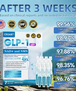 In clinical studies, users of Croaie® GLP-1 & NAD+ Slimming Support Drops have experienced impressive results, with some losing as much as 8-10 pounds of stubborn fat in just one week. Just one vial (0.7 ml) per day targets the burning of visceral and abdominal fat, helping to promote a leaner body without the need for strenuous exercise.
