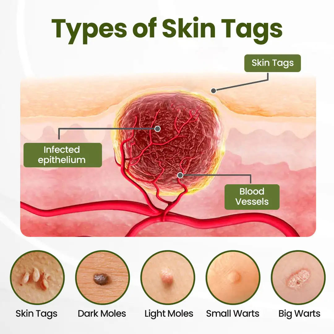 KeraErase uses a non-acidic botanical formula that gradually softens raised tissue and dissolves the keratin buildup beneath the bump.This allows the skin tag or wart to flatten naturally without burning, peeling, or irritation.