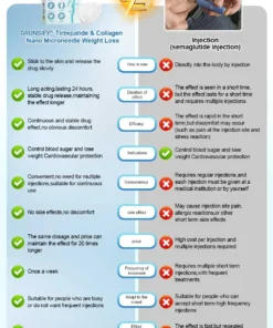 The Nano Microneedle Patch contains SMGT-GLP-1 in each patch. It works by mimicking the action of Glucagon-like Peptide-1 (GLP-1). promoting insulin secretion. inhibiting glucagon secretion. and delaying gastric emptying. which helps control blood sugar levels and aids in weight loss.