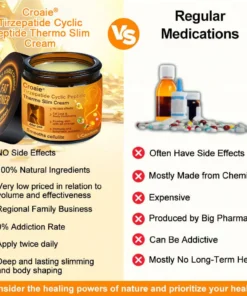 Croaie®NIDDK Tirzepatide Cyclic Peptide Thermo Slim Cream is a breakthrough formula developed by a team of over 30 metabolic health experts at the Mayo Clinic, based on more than 20 years of clinical research. This innovative cream combines NIDDK-Tirzepatide, medical-grade botulinum toxin, and powerful herbal extracts. The heat generated through skin absorption activates NIDDK-Tirzepatide to promote insulin secretion and inhibit glucagon secretion, thereby helping to regulate blood sugar levels and support weight loss. It also aids the digestive system and helps smooth out cellulite.