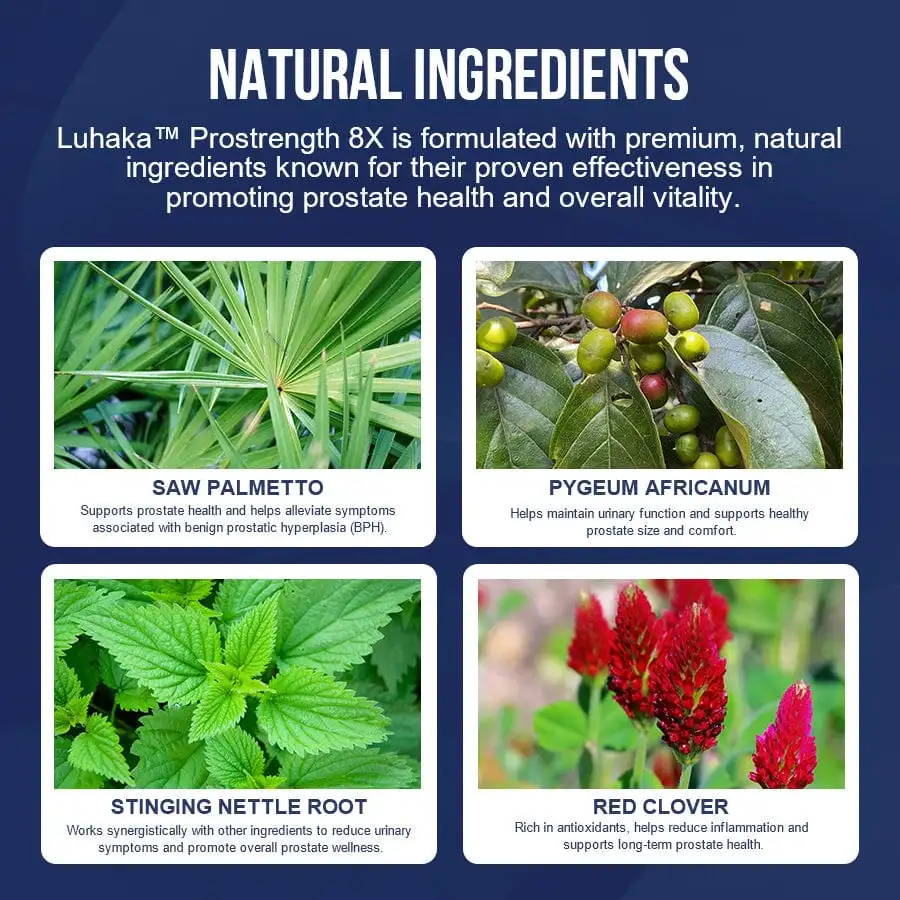 Luhaka™ Prostrength 8X is here to help. Formulated with powerful natural ingredients, it supports prostate health, enhances energy, and helps you feel stronger, more confident, and back in control.