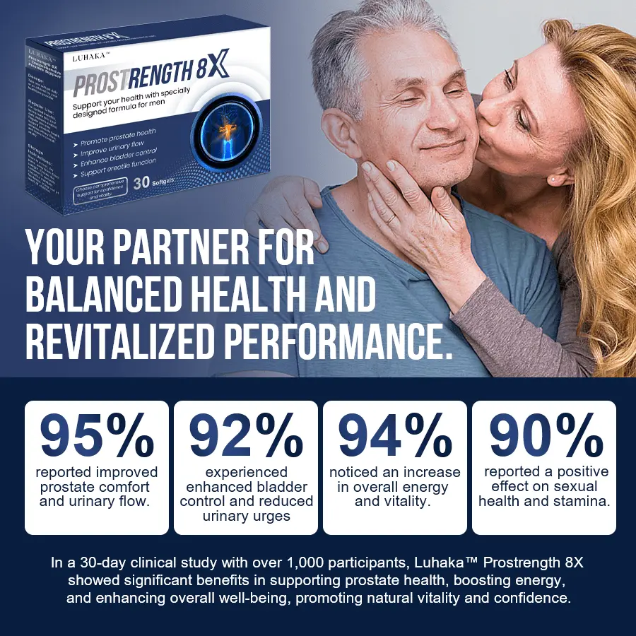 *In a 30-day clinical study with over 1,000 participants, Luhaka™ Prostrength 8X showed significant benefits in supporting prostate health, boosting energy, and enhancing overall well-being, promoting natural vitality and confidence.